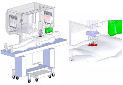 The difference between the new skin printer and previous ones is that the new machine does not just apply new skin to the wound, but first uses a 3D laser scanner to scan the patient's wound to build a wound topology map, and then inputs the data into the software and tells the device where to put the printed skin layer. Using this image, the device fills the deepest part with the generated fibroblasts, and then builds tissue formed by keratinocytes in the upper layer of the wound.