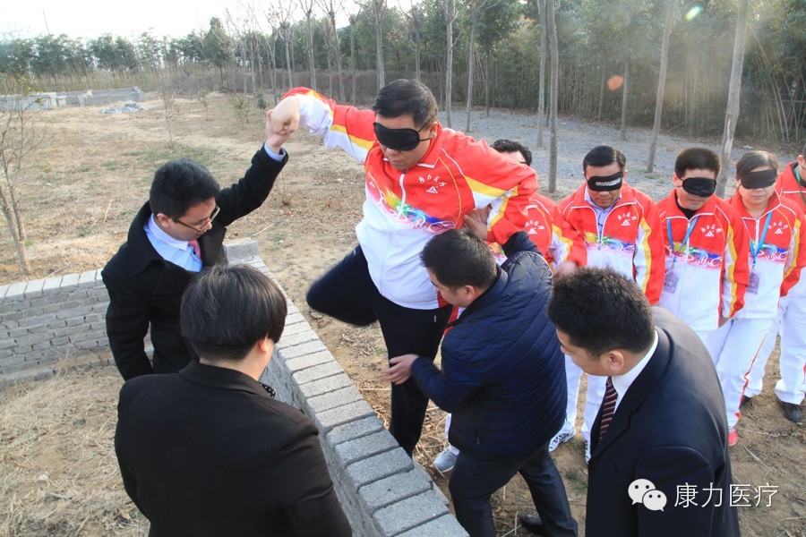 戶外牽手培訓(xùn)項(xiàng)目:大家蒙著雙眼,在呂作文總經(jīng)理的領(lǐng)導(dǎo)下,克服困難,努力前行!