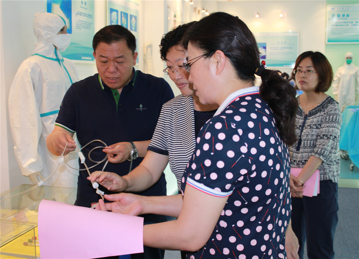 總經(jīng)理向邵局長一行介紹公司高新技術(shù)產(chǎn)品:一次性使用精密過濾輸液器