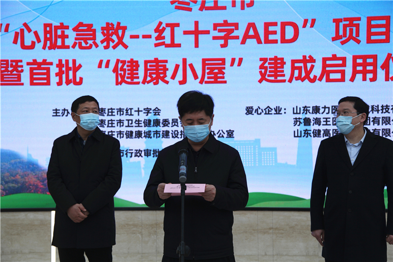 李全太副會(huì)長在講話中代表省紅十字會(huì)向棗莊市“心臟急救 紅十字AED”項(xiàng)目啟動(dòng)暨首批“健康小屋”建成啟用表示熱烈祝賀,向給予紅十字人道公益事業(yè)大力支持的愛心企業(yè)和社會(huì)各界人士表示衷心的感謝!希望棗莊市紅十字會(huì)牢固樹立“以人民健康為中心”的發(fā)展思想,將AED項(xiàng)目做成系統(tǒng)性工程,真正讓“救命神器”發(fā)揮作用。